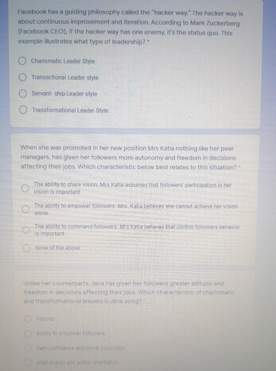 Mark Zuckerbergs Leadership Style. Leaders should use the most describable styles in order to drive performance. His decision is solely made which are benefi cial for the.